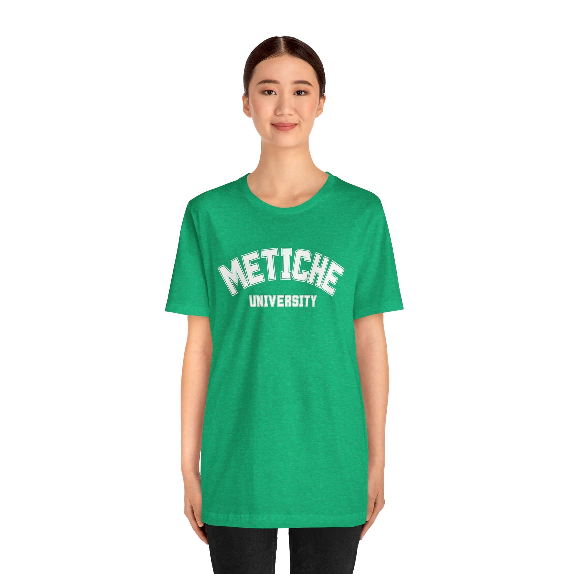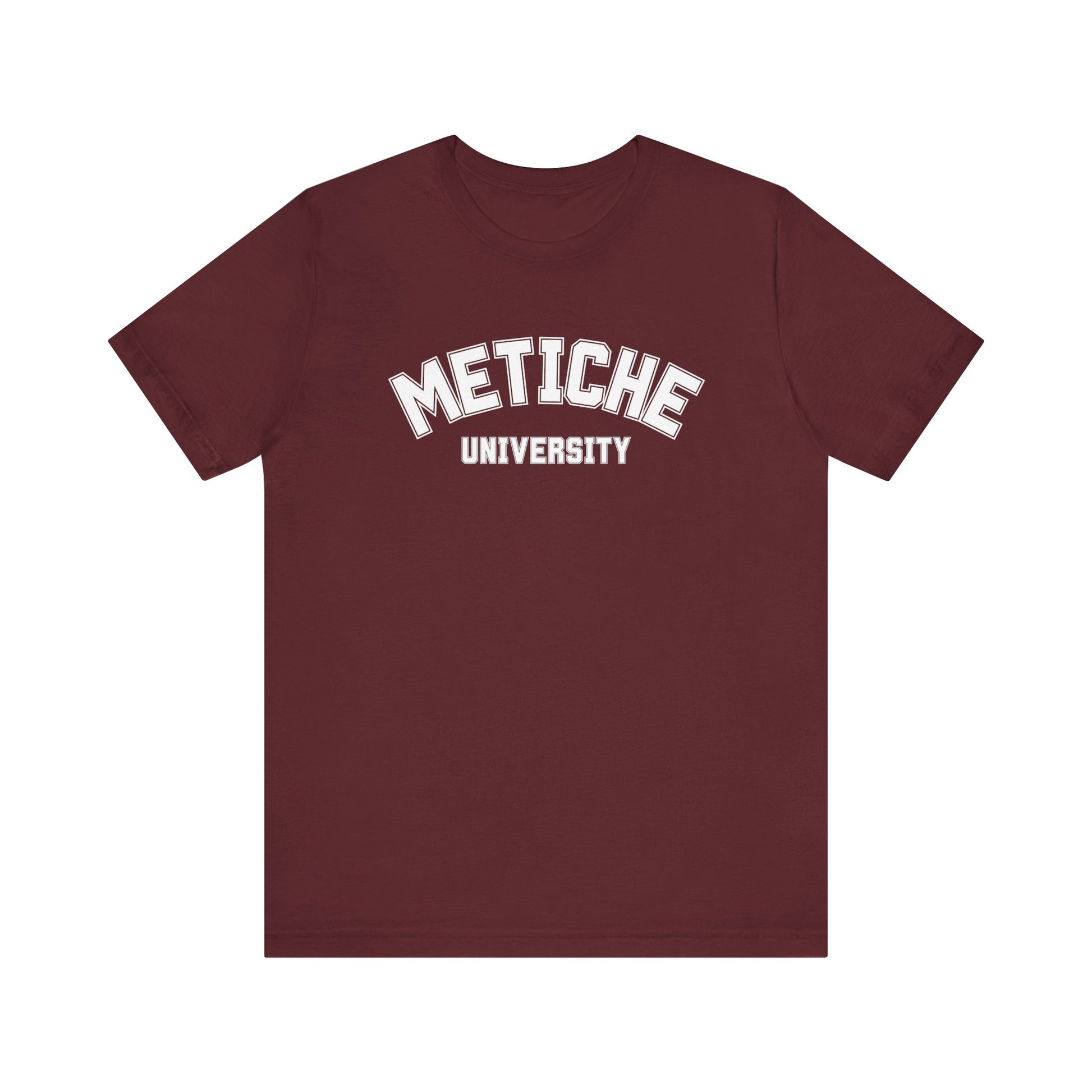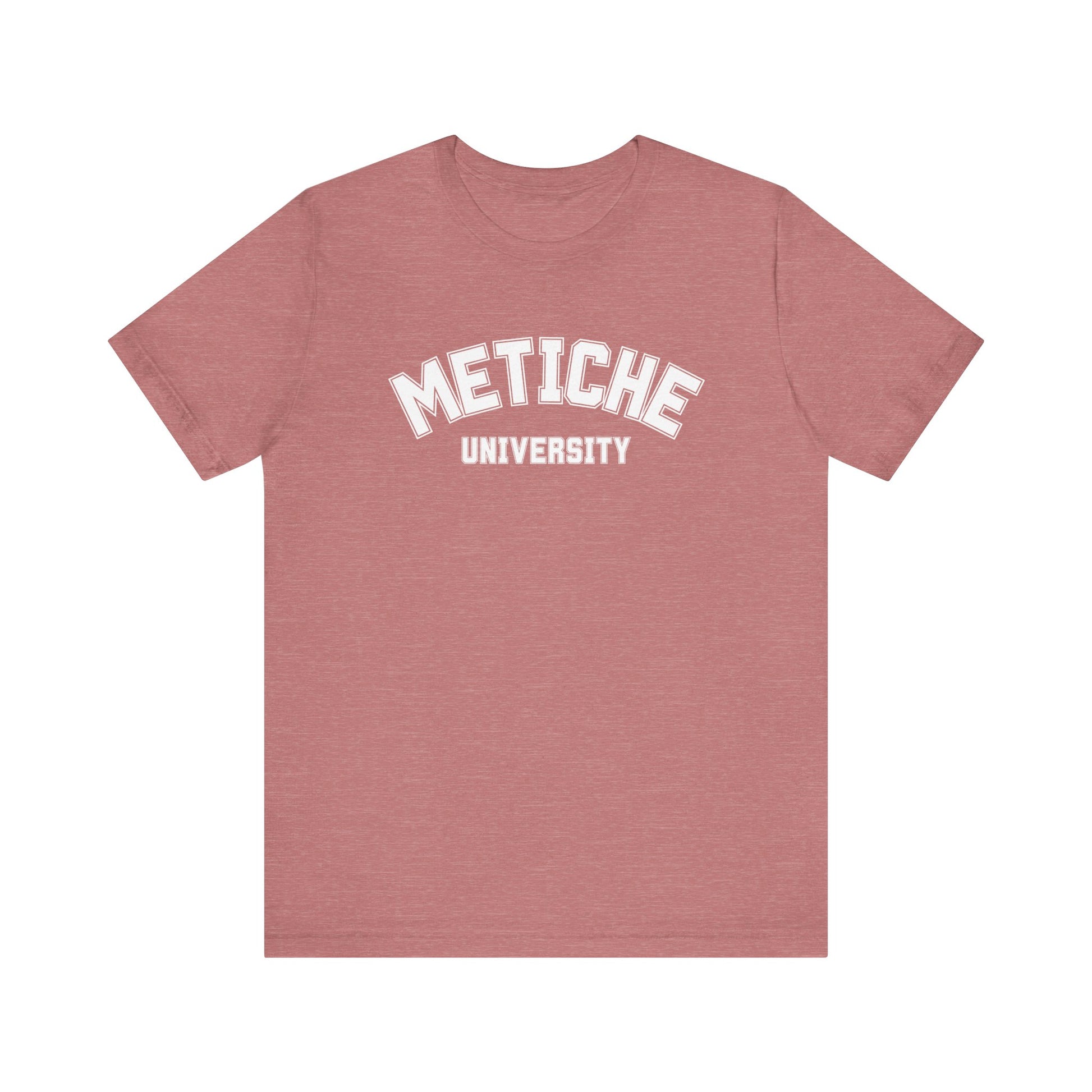 Show off your playful side with this Metiche University Shirt, a funny graphic tee designed for Latinas who love to laugh and embrace their bold personality. Perfect for those who wear the word metiche with pride, this funny Latina shirt is a fun addition to any casual wardrobe.