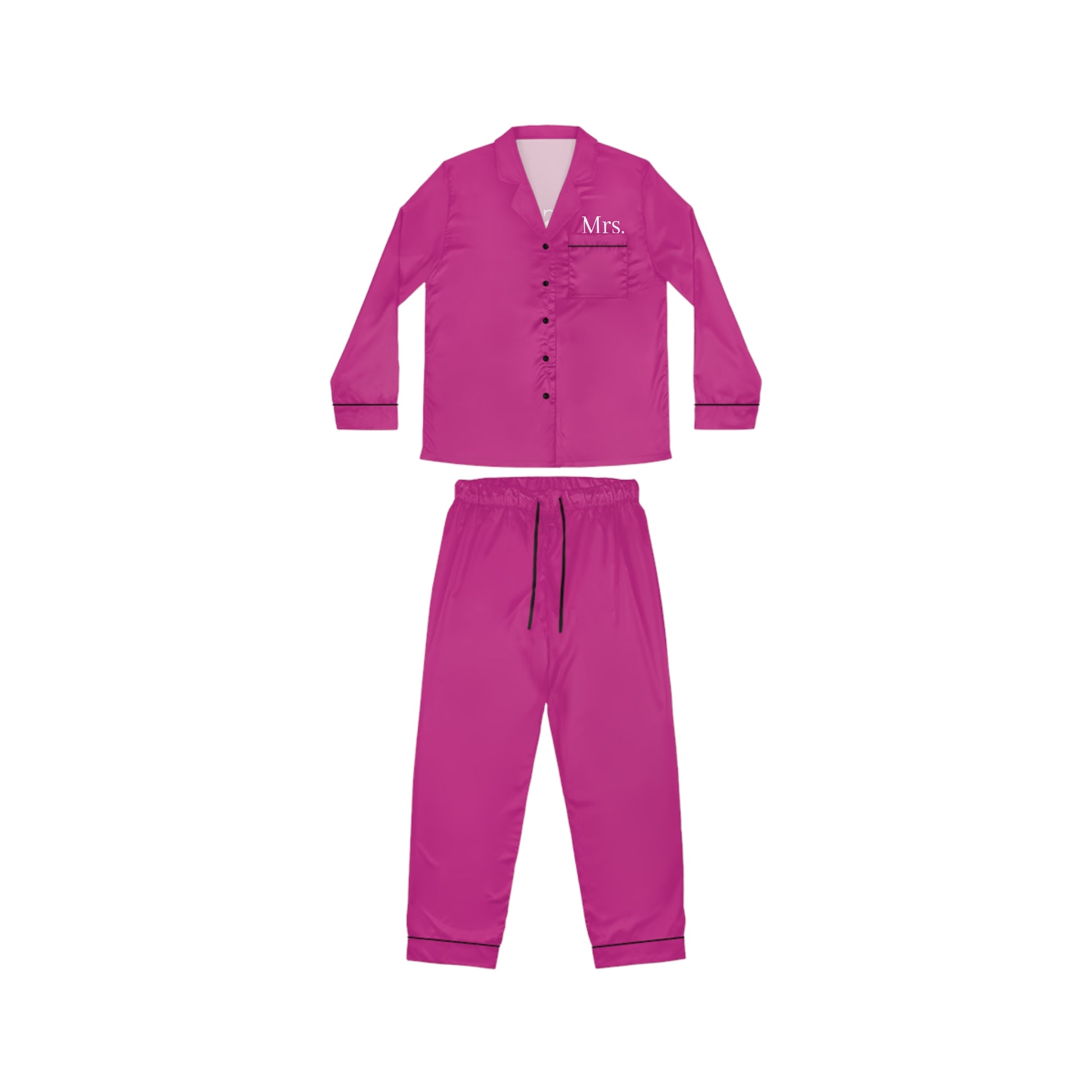 Introducing the "Mrs." Satin Pink Pajamas – a delightful mix of elegance and romance, perfect for newlyweds or any woman who enjoys a touch of luxury. These pajamas are made from soft, satin fabric in a beautiful blush pink, designed to feel as gentle as they look. The silky material offers a smooth, breathable feel against the skin, ideal for relaxing evenings or peaceful sleep. Featuring a relaxed yet flattering fit, this set adds a hint of sophistication to your nighttime routine. Whether it's a gift for a special occasion or a treat for yourself, the "Mrs." Satin Pink Pajamas are a timeless way to embrace comfort and style.