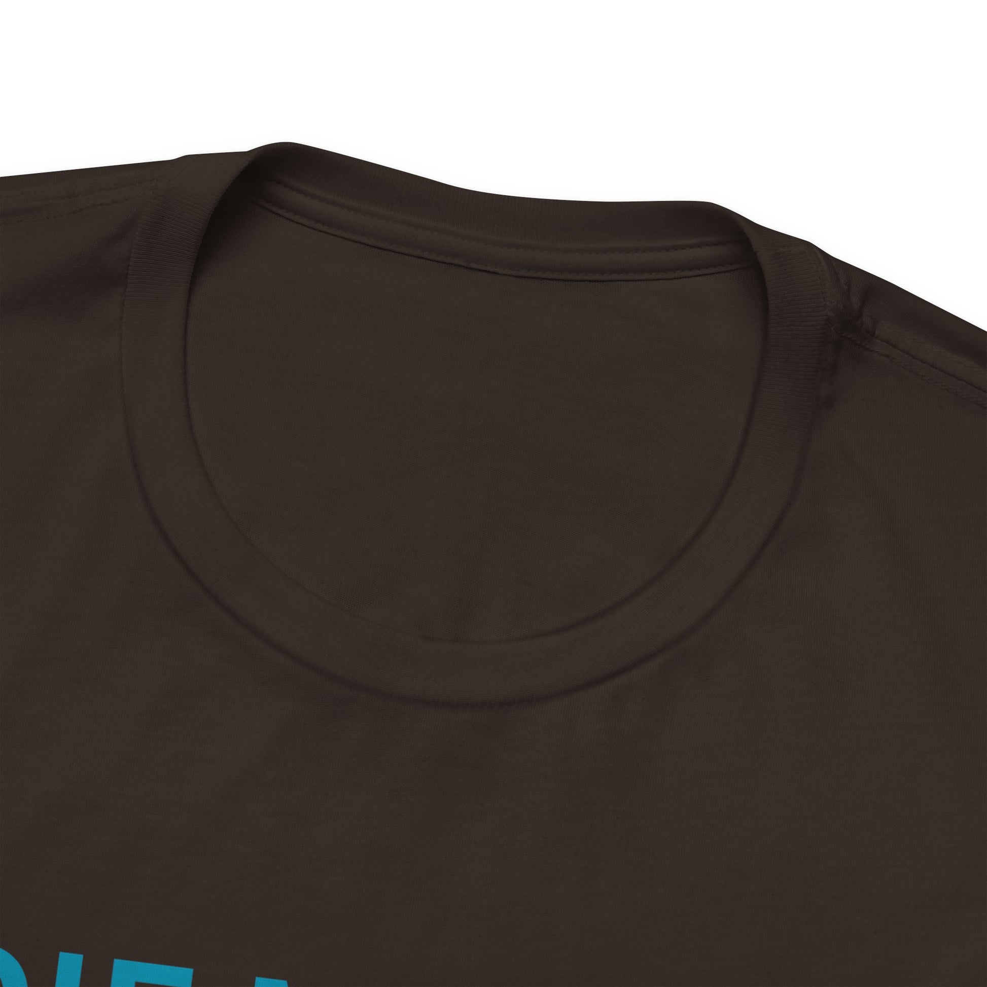 The typography is carefully designed to make a visual impact, with bold capital letters that demand attention. The shirt's design is minimalist yet powerful, allowing the message to speak volumes without overwhelming the overall aesthetic.