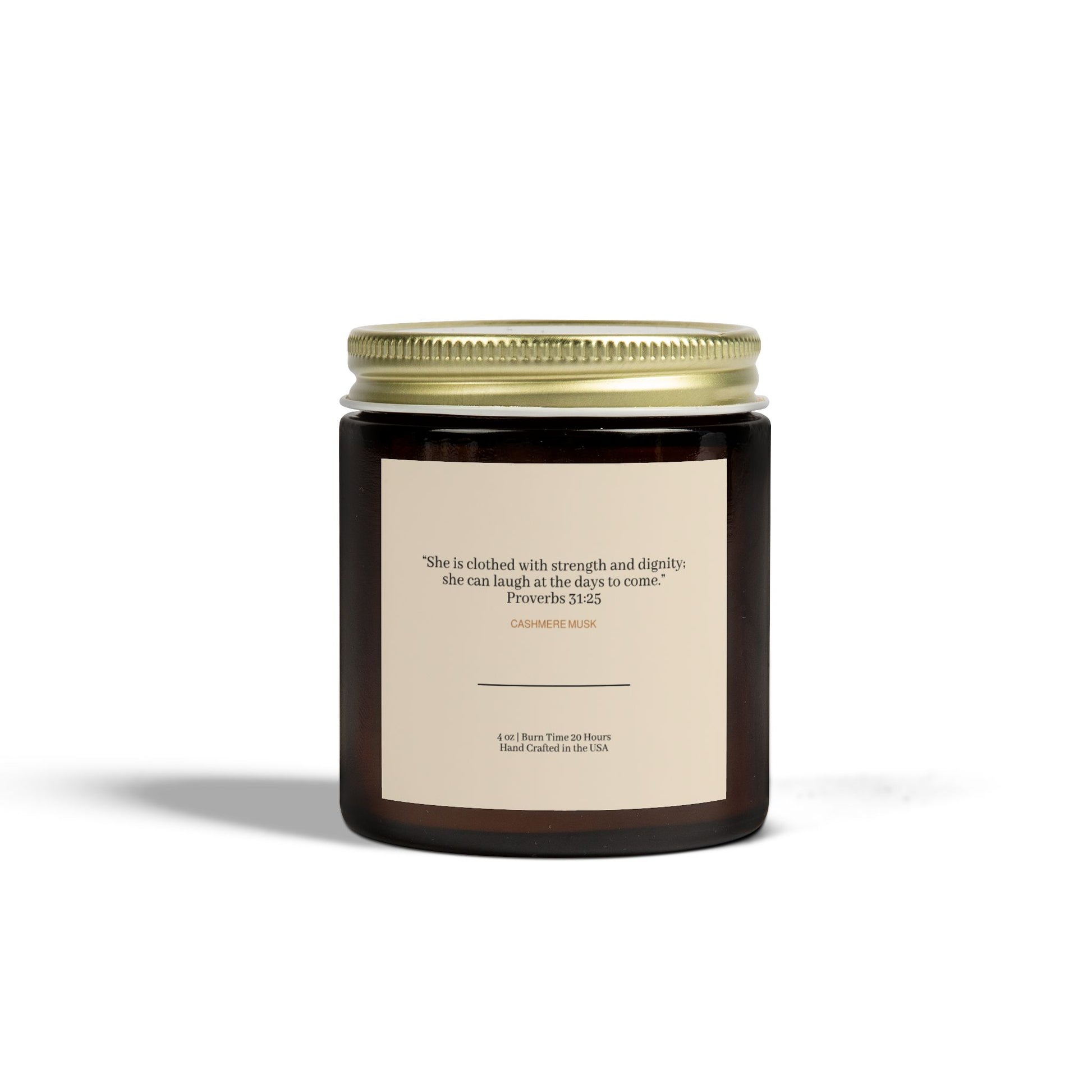 Wrap yourself in the warmth and strength of the Proverbs 31:25 Cashmere Musk Candle, inspired by the verse “She is clothed with strength and dignity; she can laugh at the days to come.” This luxurious candle combines the soft, comforting scent of cashmere with the earthy elegance of musk, creating an inviting fragrance that embodies grace, strength, and confidence.