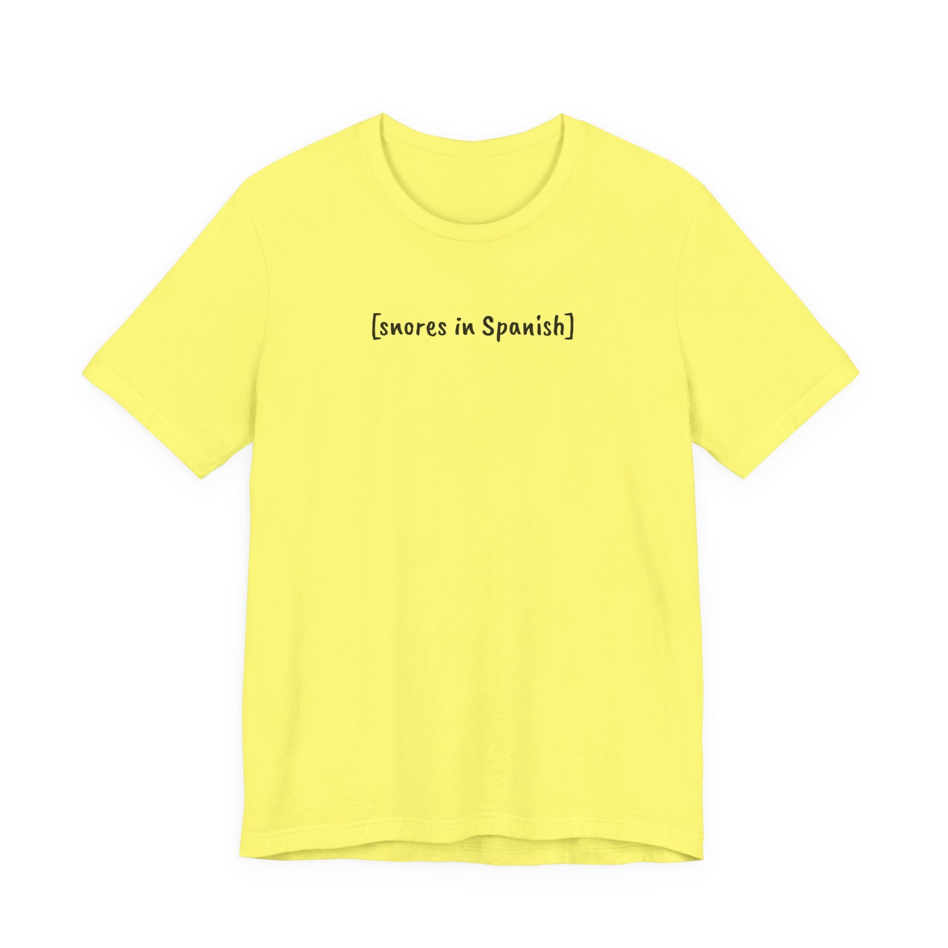 Available in a range of sizes and color options, the "[Snores in Spanish]" shirt is versatile and suitable for individuals of all ages and genders. Whether you prefer a subtle and minimalist design or a vibrant and expressive look, there's a variation that will match your personal style.
