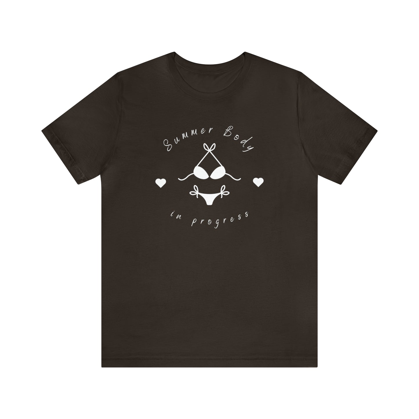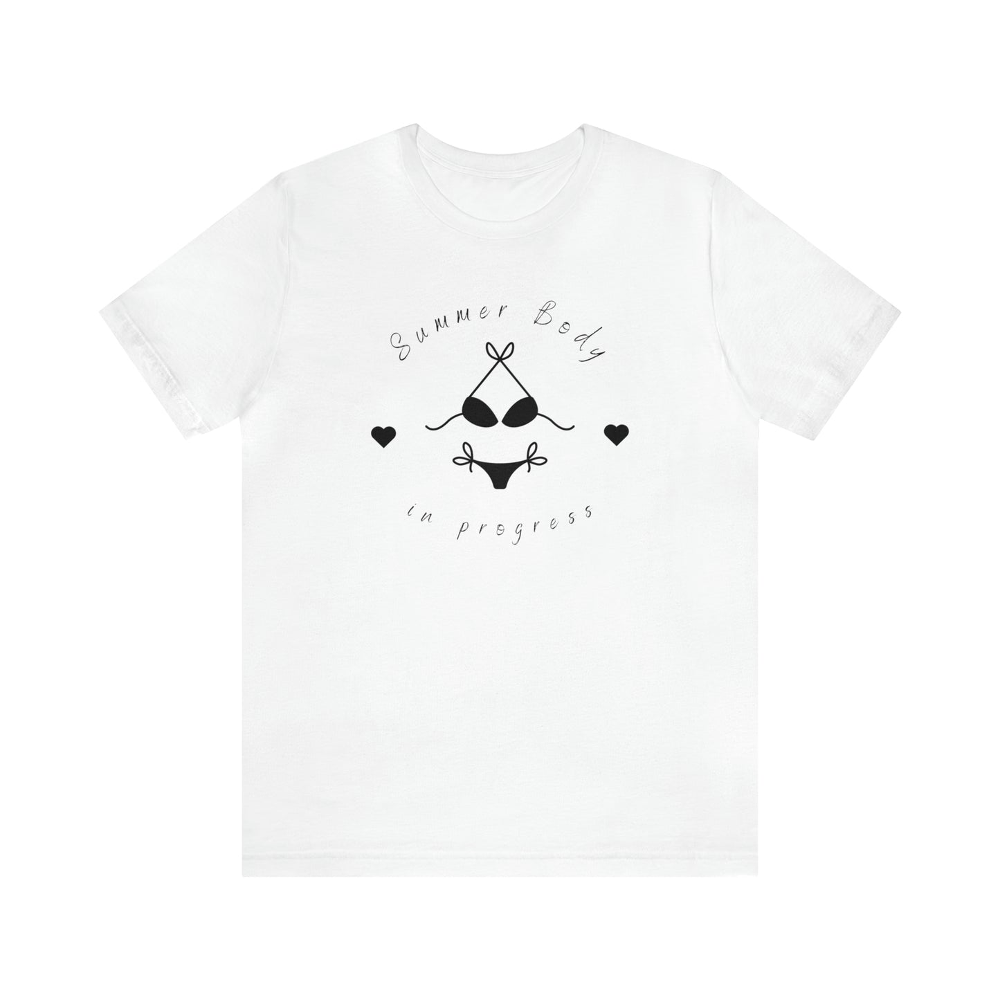 Emblazoned with the phrase "Summer Body in Progress," this shirt serves as a personal affirmation, reminding you of your commitment to a healthy lifestyle and your determination to reach your fitness aspirations. It embraces the idea that every step forward is an achievement, regardless of where you are on your journey.
