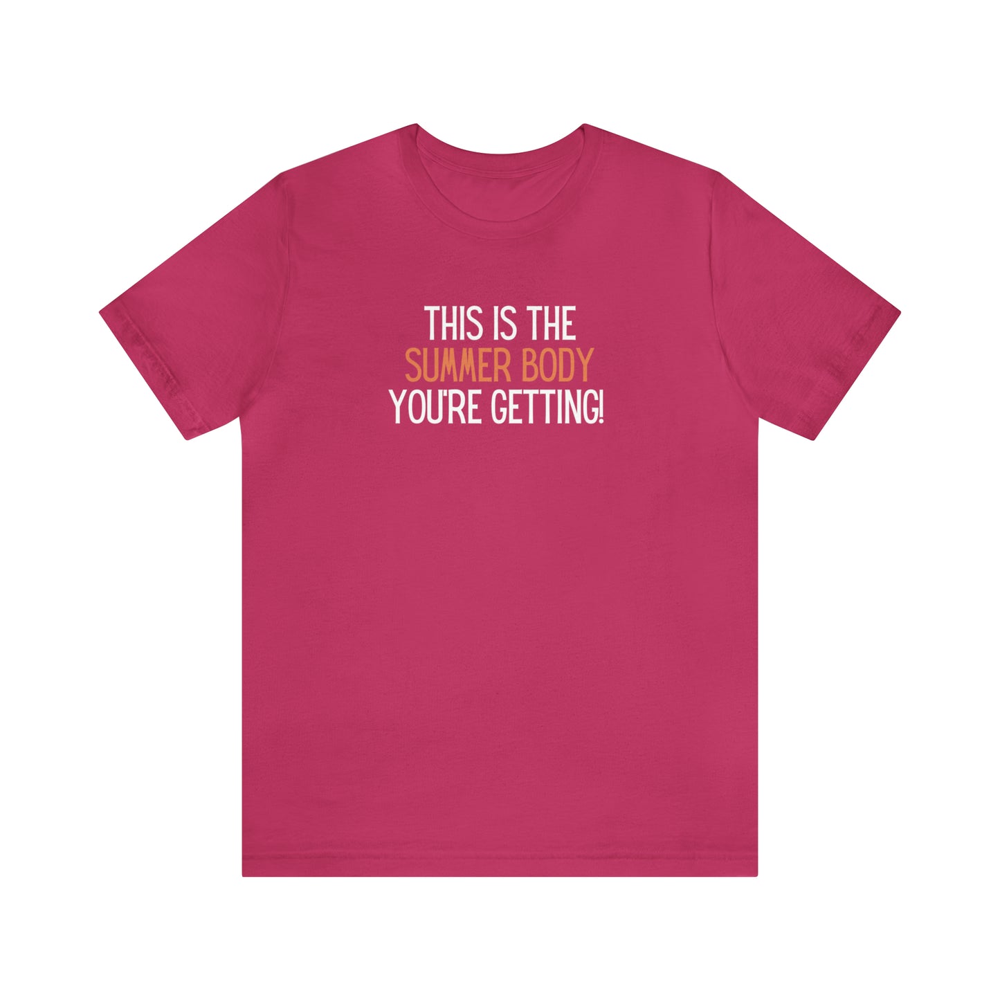 Emblazoned with the powerful phrase "This is the Summer Body You're Getting," this shirt stands as a reminder that you are proud of your body just as it is. It rejects the notion of striving for an idealized "perfect" summer body and instead embraces self-love and authenticity. It challenges the notion that your worth is determined by conforming to societal expectations.