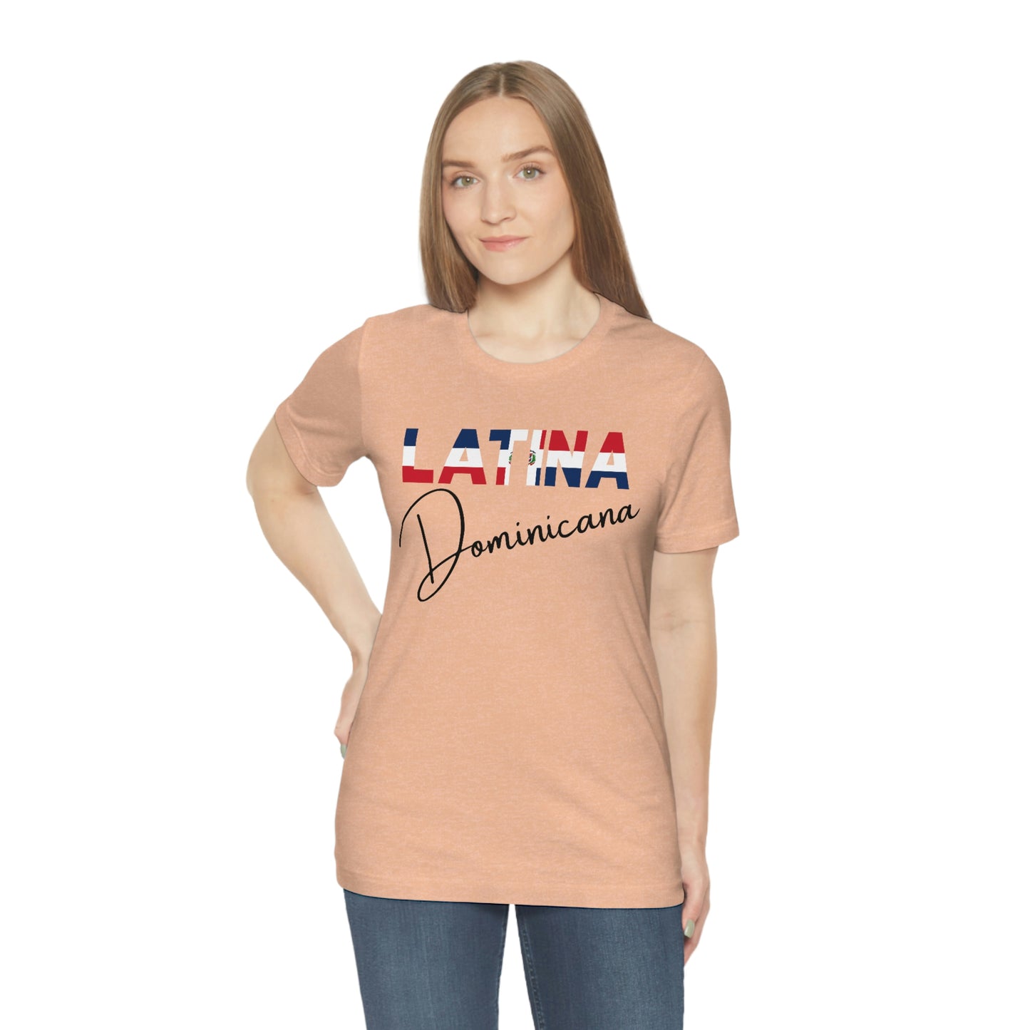 Introducing the "Latina Dominicana" top - a stylish and meaningful addition to your wardrobe. This top comes in a variety of colors, so you can choose the one that best suits your personal style. The word "Latina" is emblazoned across the front of the shirt, with the Dominican flag proudly displayed on the letters, symbolizing the unique cultural heritage of the Dominican Republic.