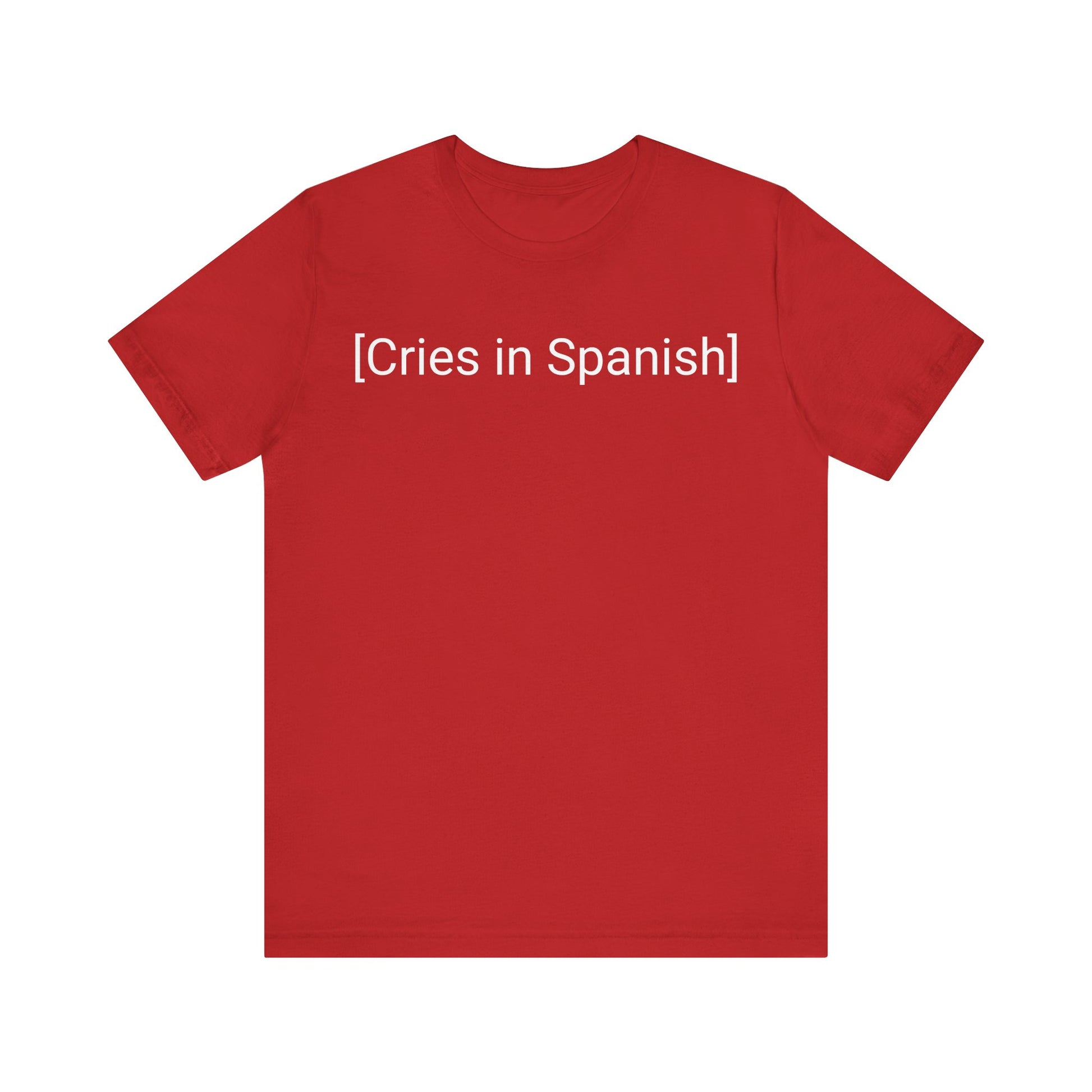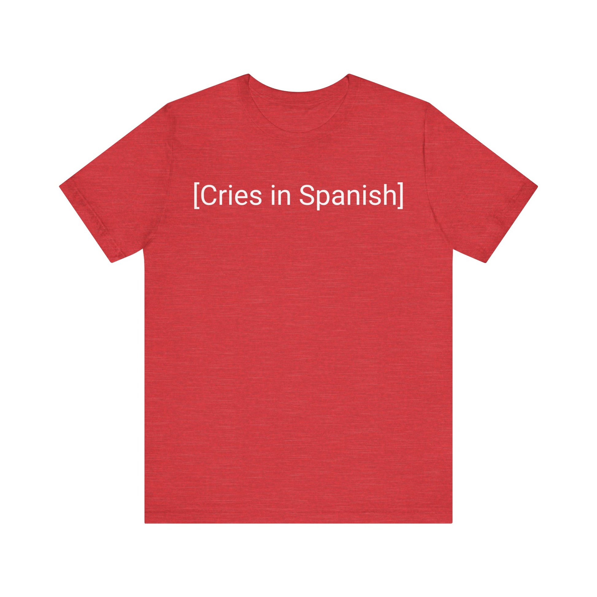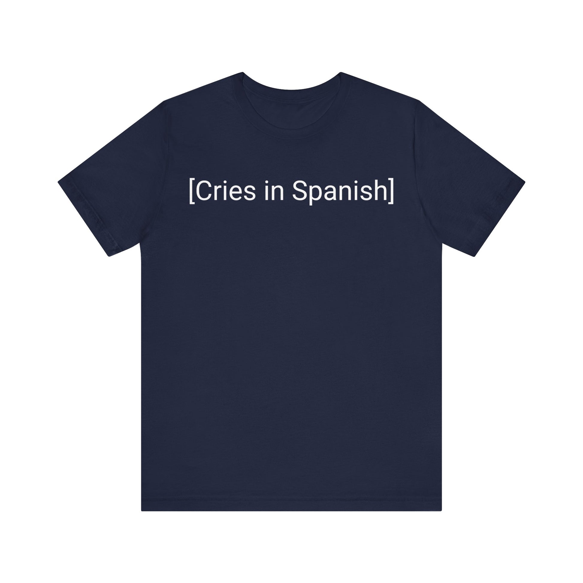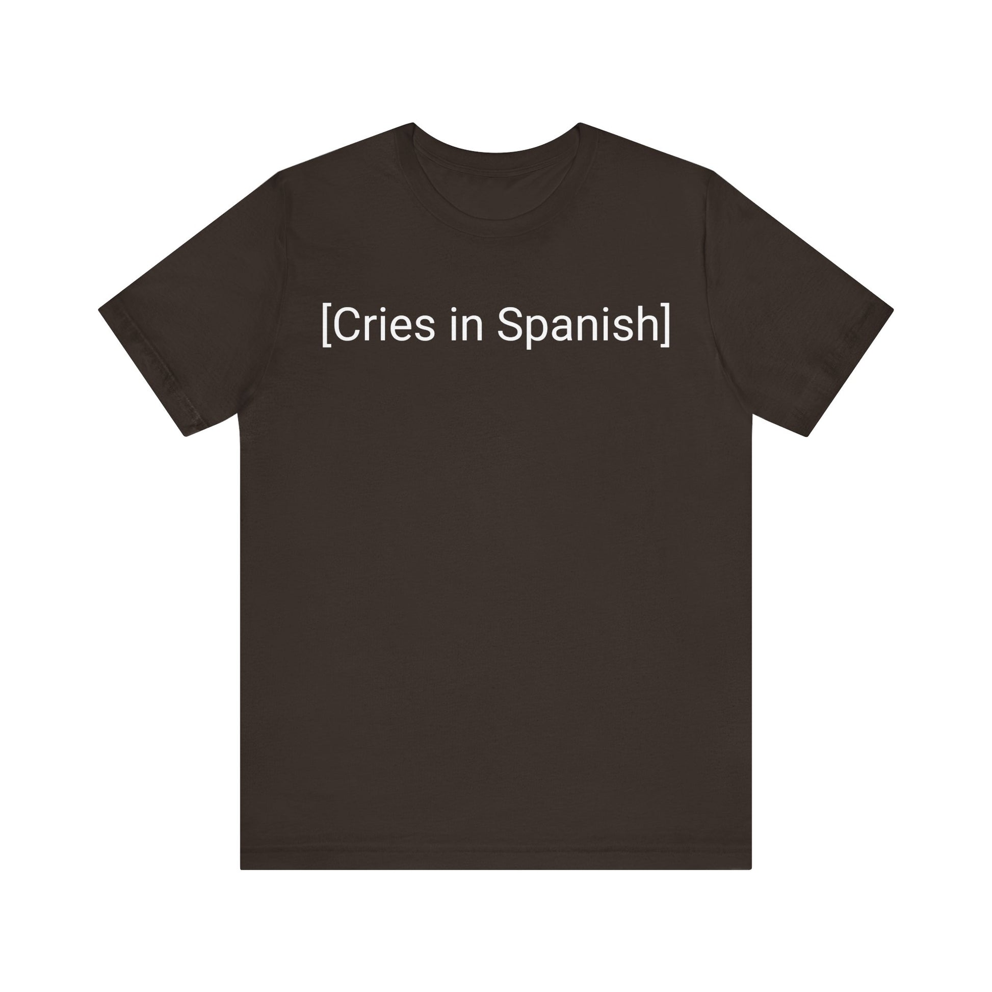 Meticulously crafted with premium quality fabric, this shirt ensures both comfort and style. The design features a clever and eye-catching typography that captures attention. The phrase "Cries in Spanish" takes center stage, conveying the idea that sometimes words spoken in Spanish carry an extra dose of passion and emotion.